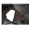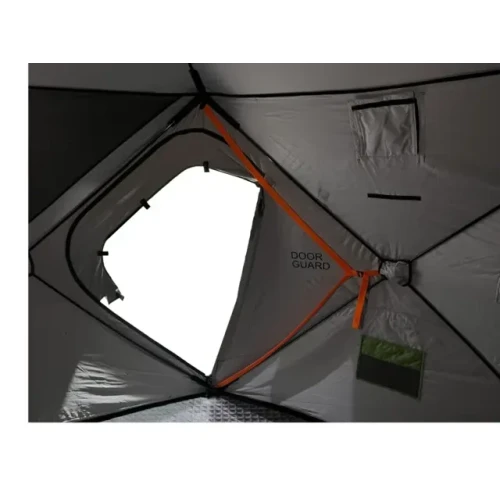 Her har man trukket vinduene ut, slik at eventuelt regnvann, som treffer flaten, ledes bort og ikke inn, som på andre pop-up telt. Innvendig har vi satt inn myggnetting.